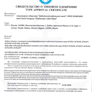 «Дубненский кабельный завод» получил первое Свидетельство о типовом одобрении судового кабеля